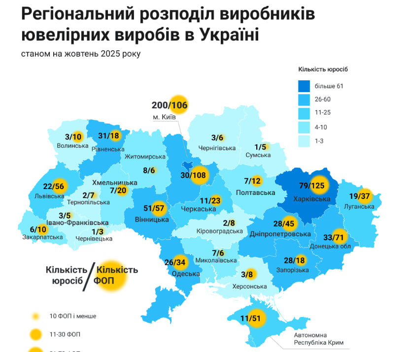 Харківщина — перша в Україні за числом ювелірних ФОПів.