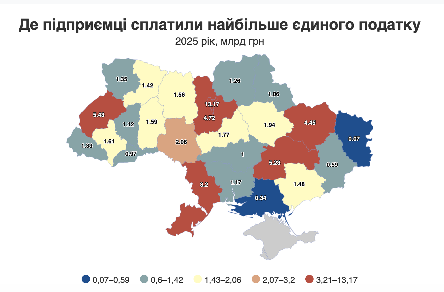 За регіонами лідирує Київ — 13,2 млрд грн, що становить 22% від загальної суми надходжень. Далі йдуть Львівська область — 5,4 млрд грн (9%) та Дніпропетровська область — 5,2 млрд грн (9%).