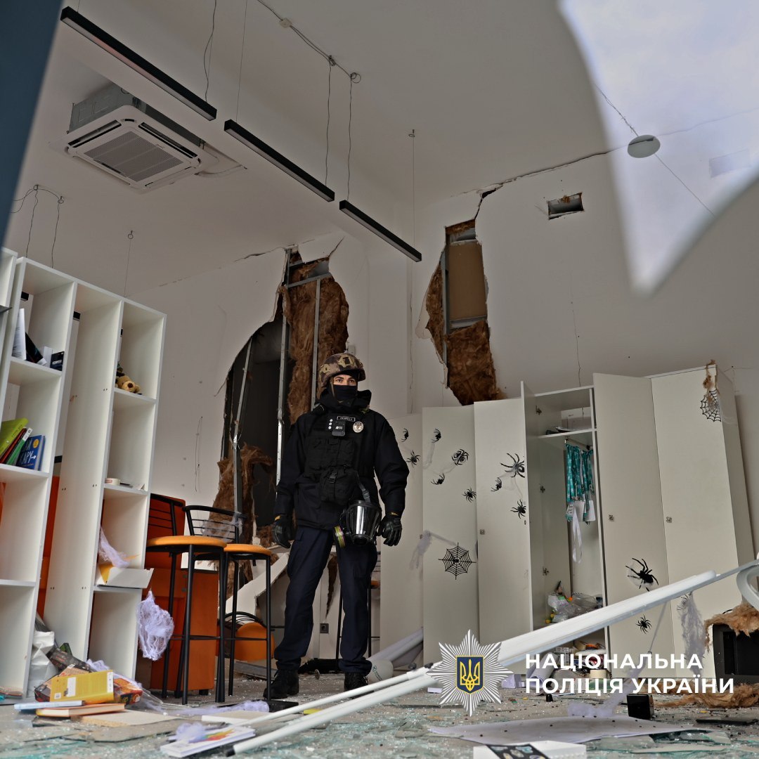 За даними поліції, через удари рф по Харкову загинув чоловік та постраждалі. Також пошкоджено приміщення приватного дитсадка.