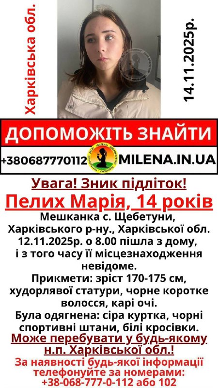 За інформацією волонтерів, дівчина пішла з дому 12 листопада о 8:00 і з того часу її місцеперебування невідоме.