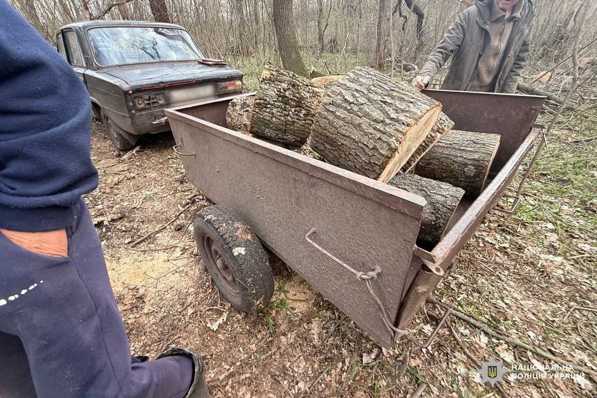 У ході огляду правоохоронці зафіксували факт незаконної порубки шести дерев. Також вилучено речові докази: бензопилу, автомобіль ВАЗ-2103 та причеп, у якому знаходилось 20 розпиляних колод.