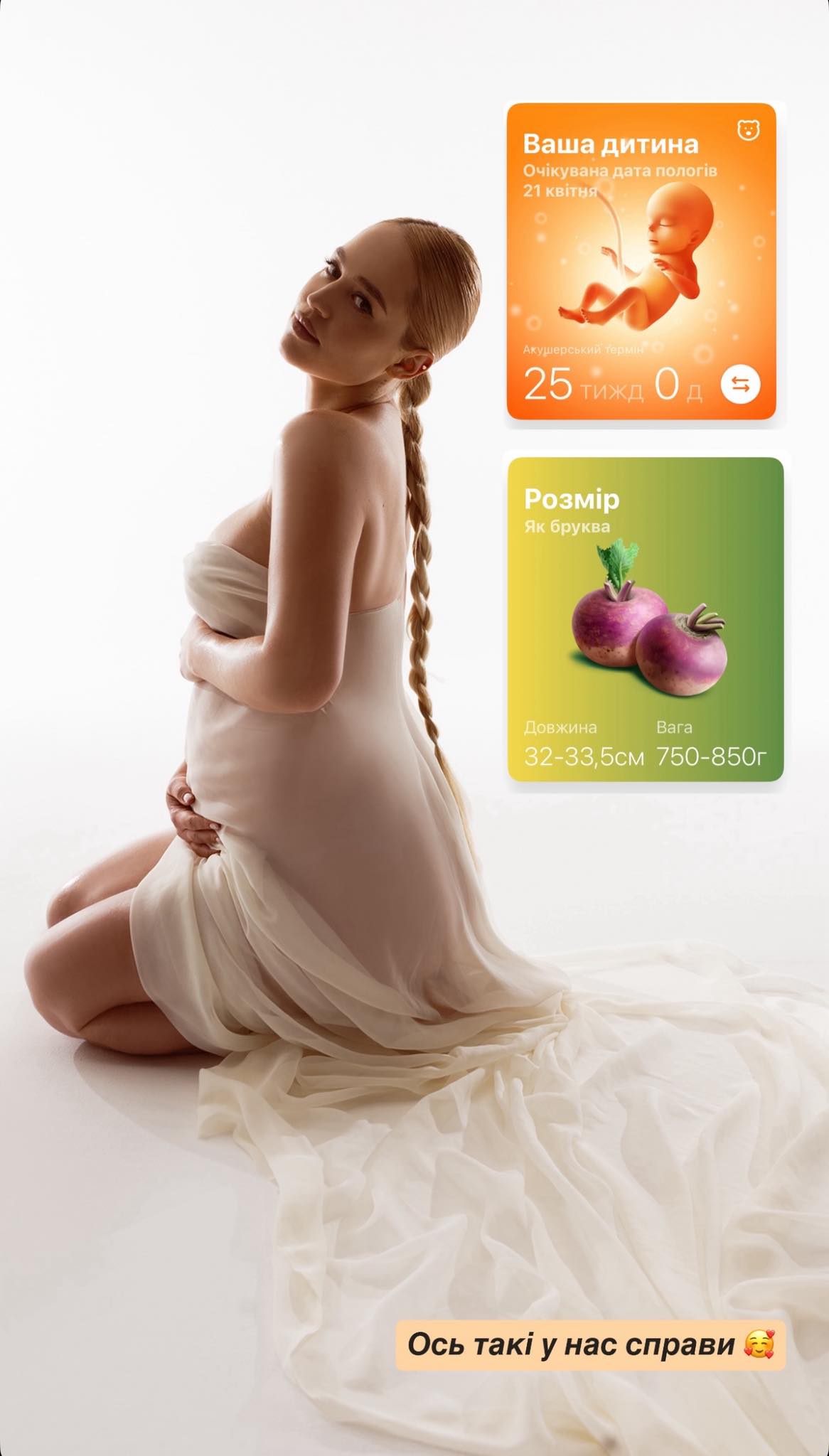 За словами Бєлєнь, нині вона перебуває на 25-му тижні вагітності. Орієнтовна дата пологів — 21 квітня.