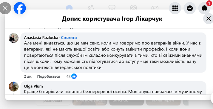 Але радує те, що адекватних коментарів більше. Багато з них від тих, хто або сам навчався на підготовчому відділенні, або стикався з його випускниками: "нас, в групі, таких було багато після 0 курсу ) На очному ))) І не всі після школи", "а якщо людина вирішила навчатися через 5-6-7… років після школи. Освіжити знання – не зайве", "Але мені видається, що це має сенс, коли ми говоримо про ветеранів війни. … І коли вони повертаються після служби їм складно конкурувати з тими, хто зі свіжими знаннями після школи. Тому можливість підготуватися до вступу – то таки можливість".