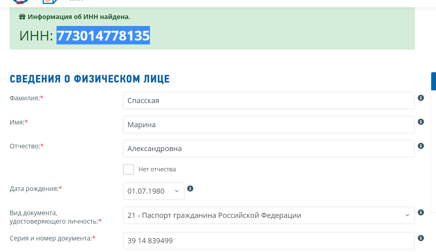 Російський реєстр підтверджує опубліковані дані. На скрині можна побачити, що людина з ідентичним ПІБ, як у харківського депутата та датою народження, отримувала паспорт рф та ІПН