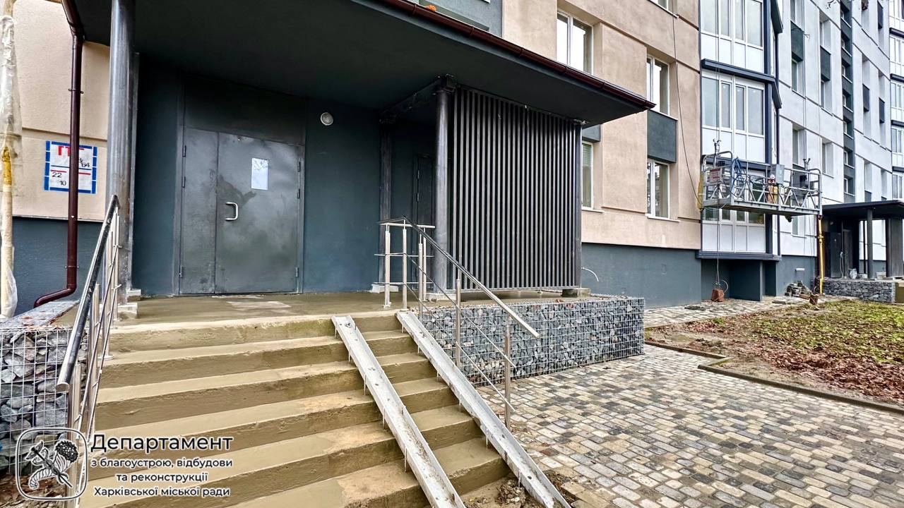 Зараз фахівці продовжують заміну пошкоджених інженерних мереж, демонтують старі ліфти та встановлюють нові кабіни, а також ремонтують вхідні групи.