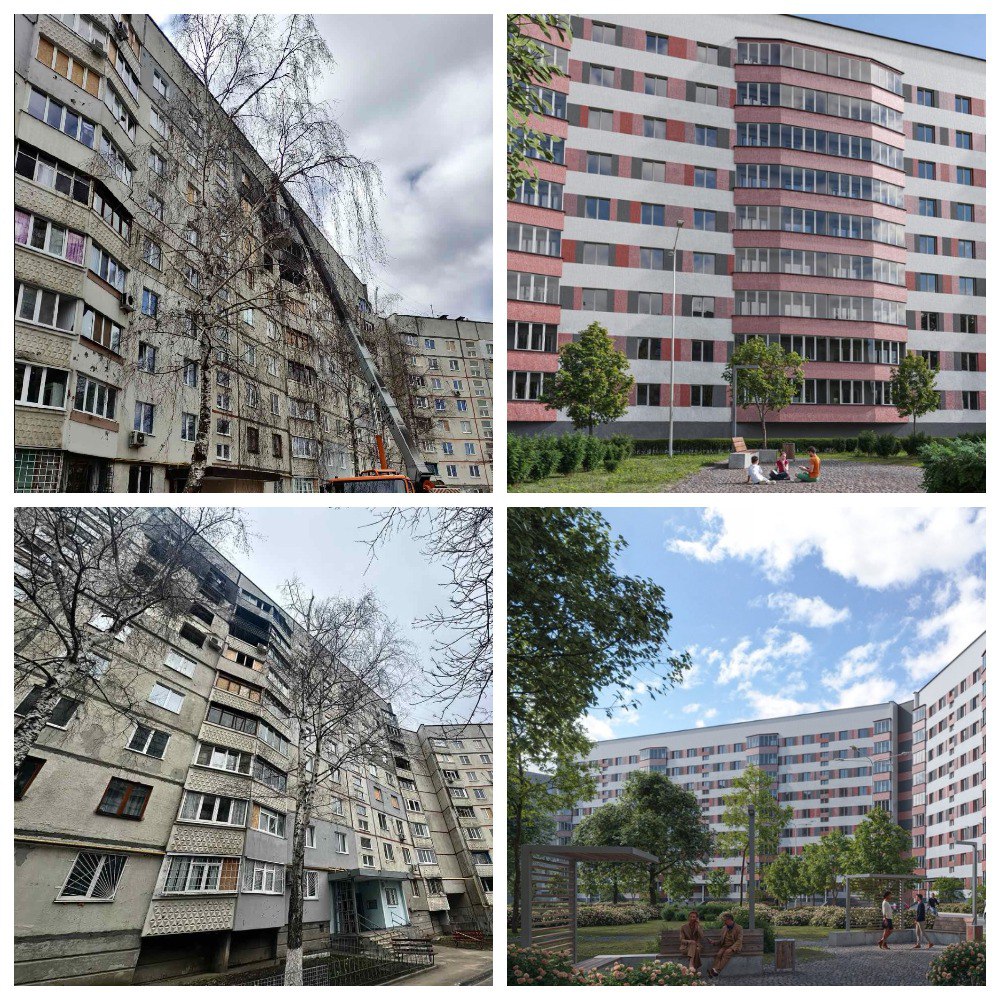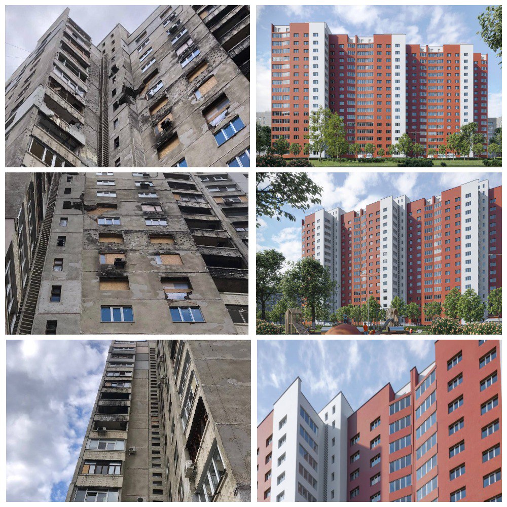 Харків'яни можуть подивитися і оцінити, як будуть виглядати пошкоджені обстрілами багатоповерхівки після реконструкції. Відповідний проєкт опубліковано на сайті Департаменту з благоустрою, відбудови та реконструкції Харківської міської ради.