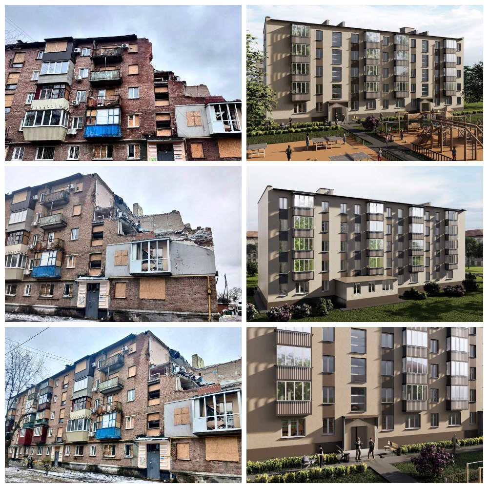 Ось проєкт реконструкції ще однієї багатоповерхівки на вул. Леся Сердюка, 48/2, пошкодженої російськими обстрілами.