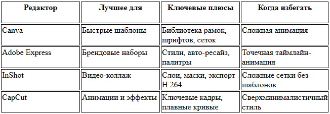 Canva та Adobe Express дають швидкі шаблони та сітки, InShot та CapCut – тонкі налаштування та анімацію. Зручно зберігати бренд-шрифти, палітри та елементи, щоб штампувати серії. Вибирайте по завданням: шаблони для швидкості, таймлайн для гнучкості.