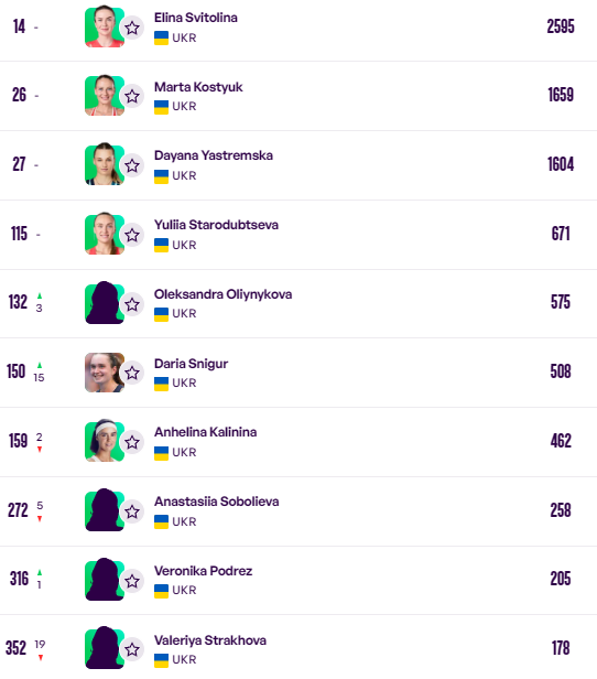 Також свої місця зберегли інші українки у топ-30 - Марта Костюк (26-та) та Даяна Ястремська (27-ма).
