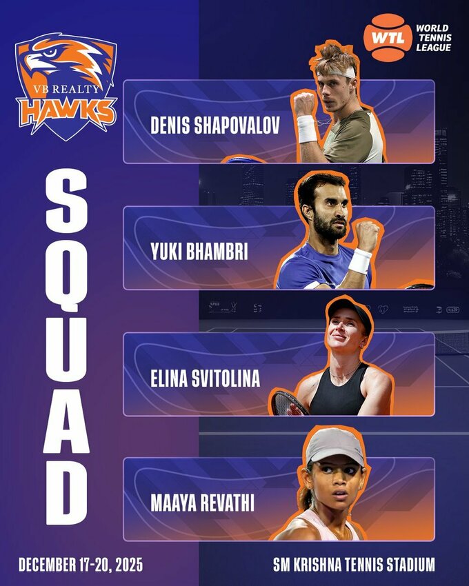 За даними ЗМІ, організатори World Tennis League оприлюднили склади команд на новий розіграш турніру, який відбудеться 17–21 грудня 2025 року в Бенгалуру (Індія).