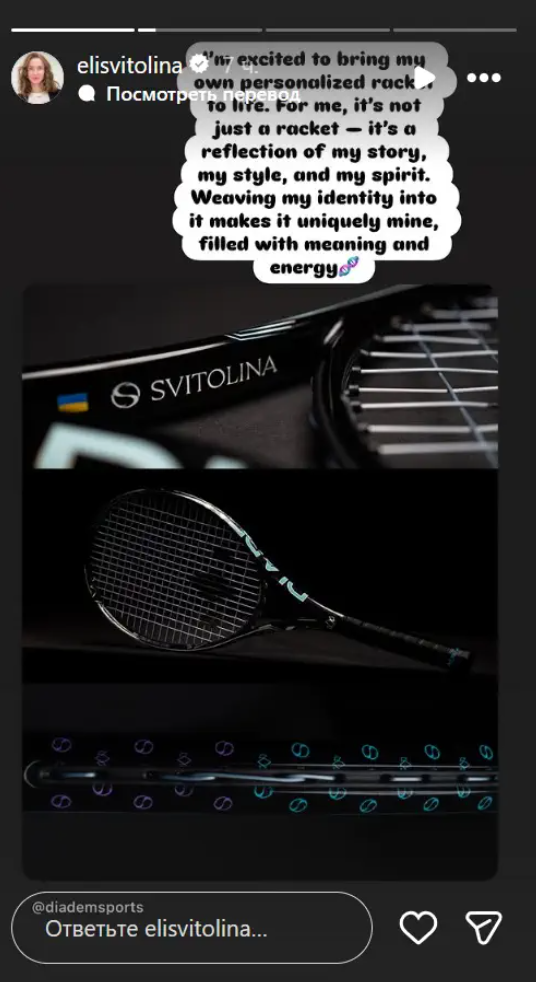 "Я з нетерпінням чекаю можливості зіграти власною персоналізованою ракеткою. Для мене це не просто ракетка - це відображення моєї історії, мого стилю, мого духу. Вплетення моєї особистості в цей проєкт робить його унікальним, наповненим змістом і енергією", - написала Світоліна.