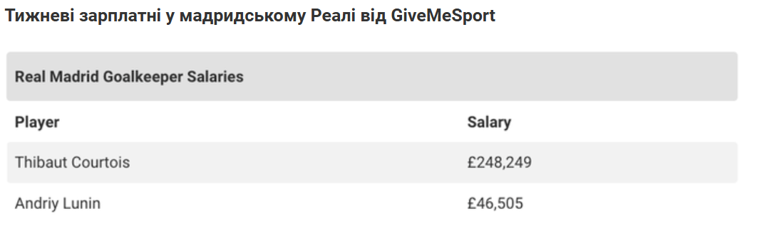 За даними медіа, це більше, ніж зарплати кількох гравців основного складу, серед яких український воротар Андрій Лунін.