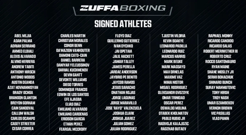 За даними ЗМІ, промоушен Zuffa Boxing опублікував список боксерів, які підписали контракти з організацією.