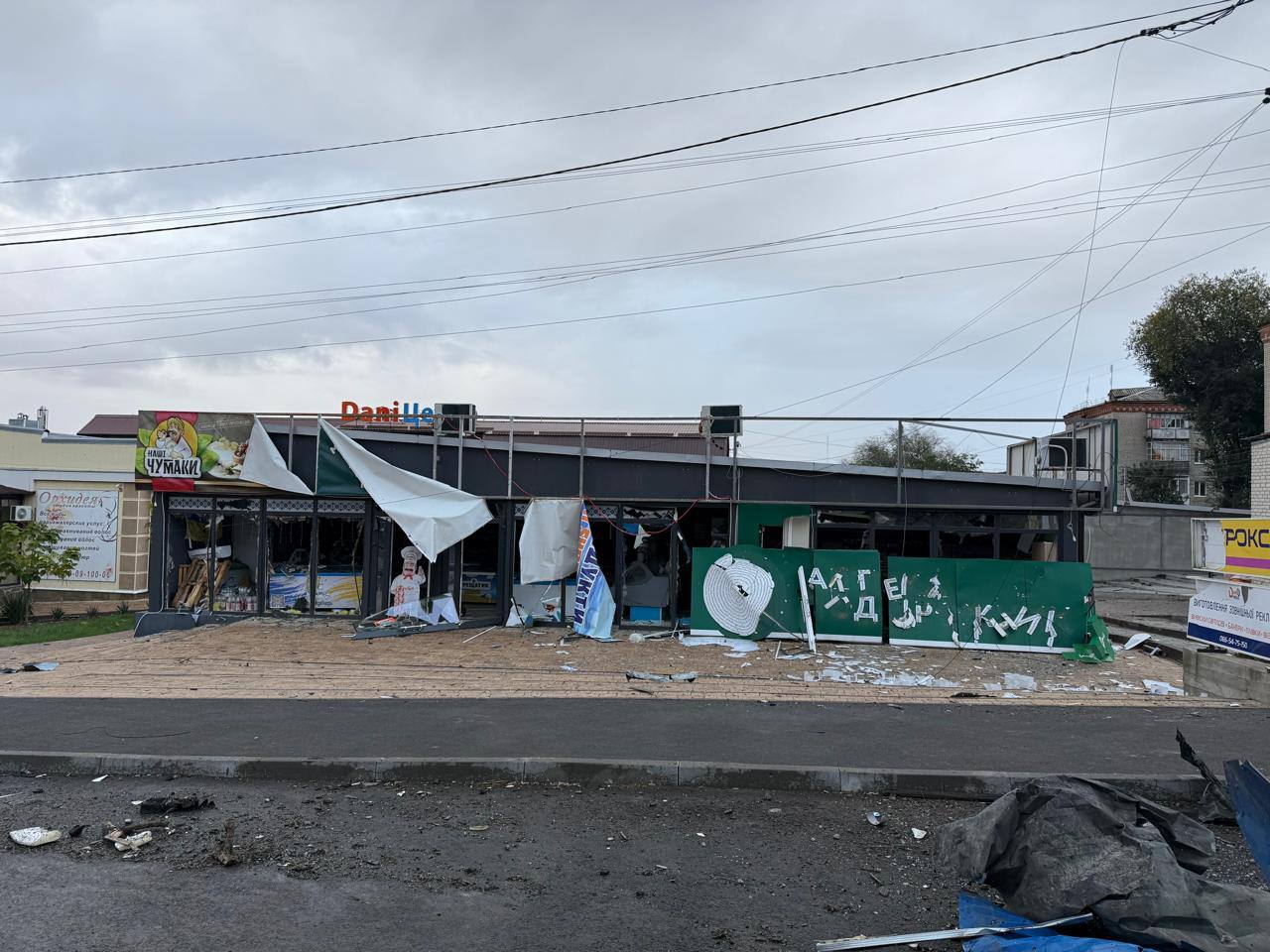 За його інформацією, 1 жовтня близько 19:05 у центрі Балаклії внаслідок ворожого ракетного удару влучання сталося у двір багатоквартирного будинку — поруч були магазини, аптека, кафе та адміністративні приміщення.
