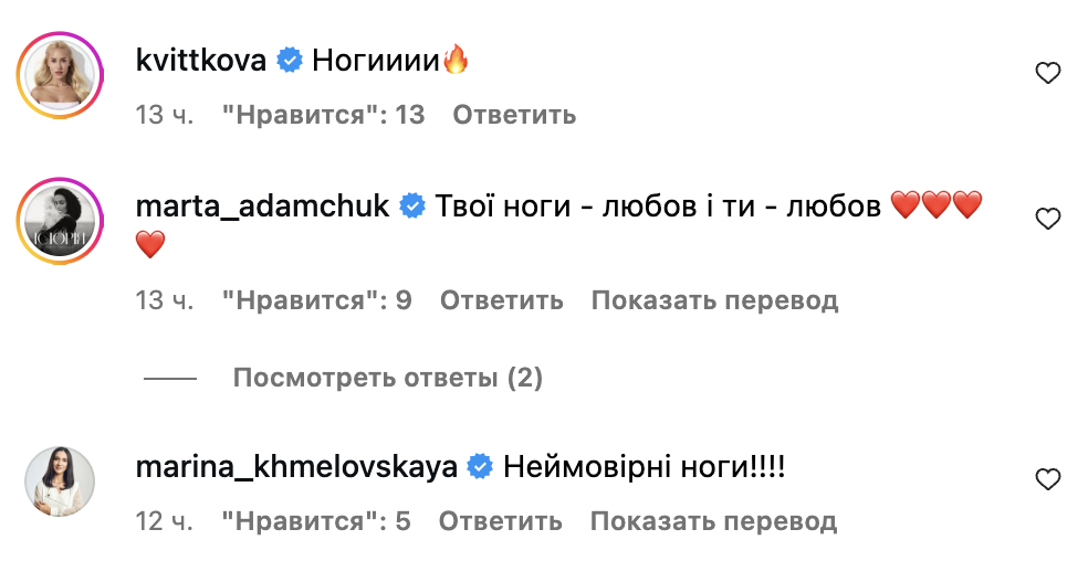 Пост швидко зібрав безліч коментарів і лайків — шанувальники та друзі підтримали артистку. Зокрема, у коментарях відзначилися: відомий кармолог Марина Хмєловська, блогерка Даша Квіткова та виконавиця Марта Адамчук.