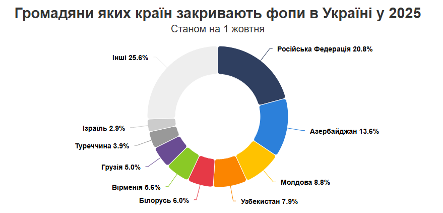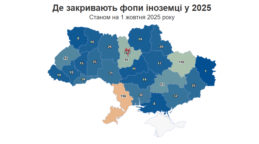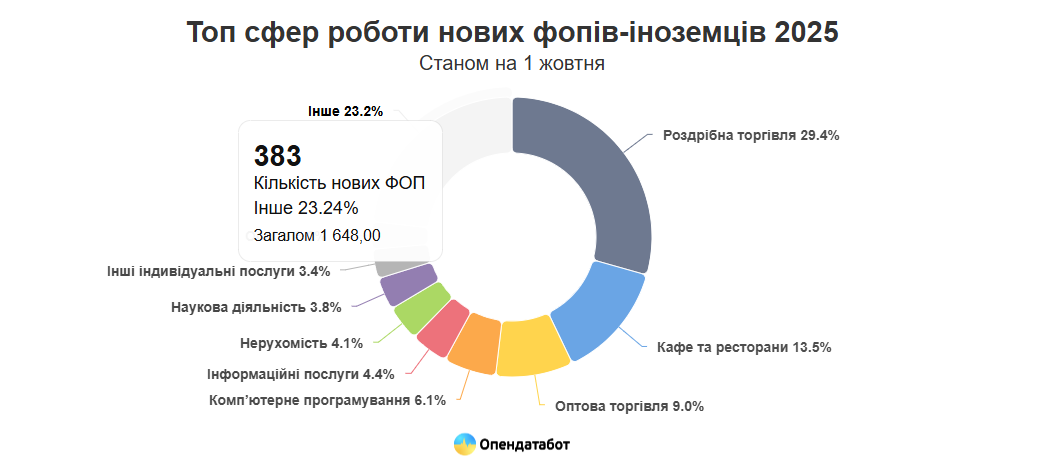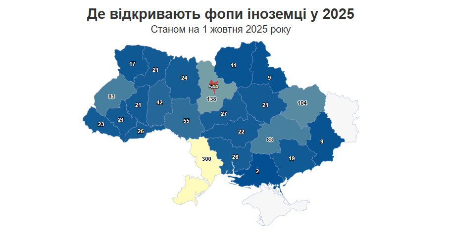 За даними аналітиків, протягом дев’яти місяців 2025 року іноземні громадяни відкрили 1 648 фопів в Україні, свідчать дані Єдиного державного реєстру.