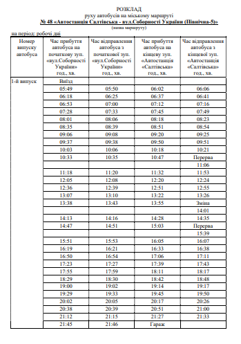 Із 20 жовтня у Харкові запроваджено новий розклад руху автобуса №48.