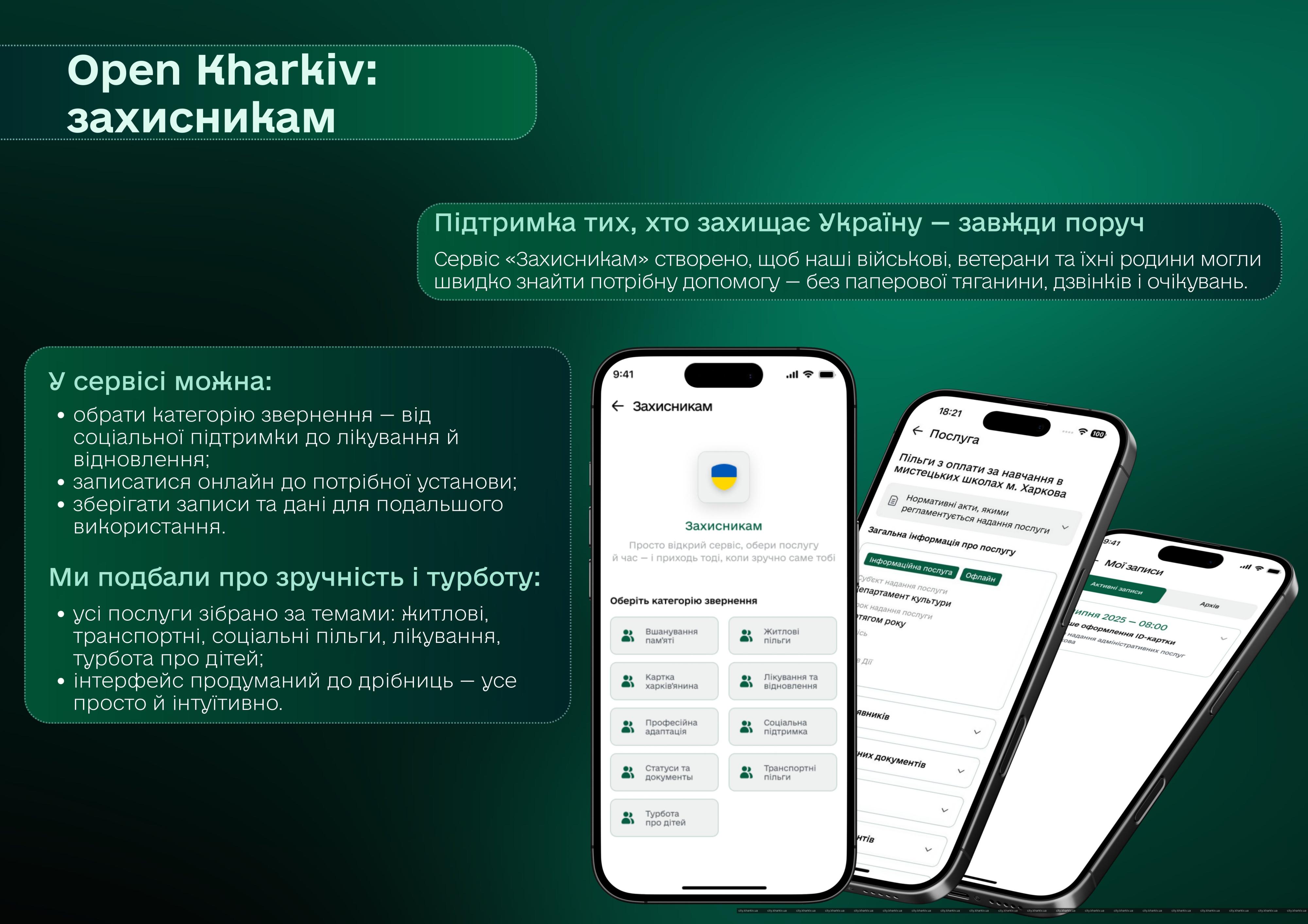 Він передбачає швидкий доступ до важливої інформації та пільг, пріоритетний запис в електронну чергу, а також можливість оформлення "Картки харків’янина" для військовослужбовців.