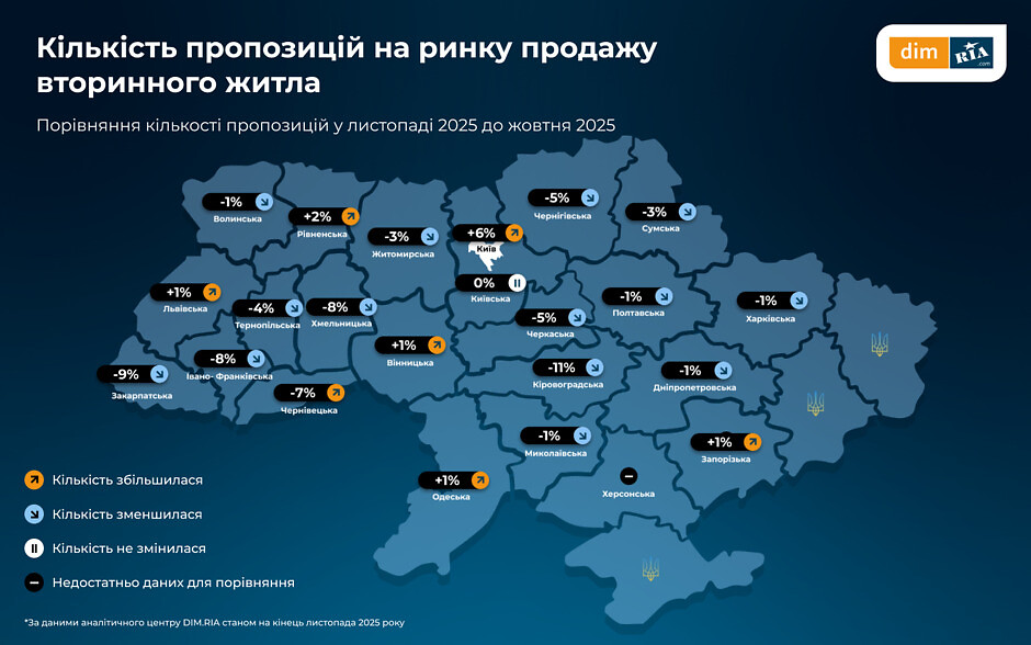 Така тенденція відповідає загальноукраїнському тренду - у більшості регіонів продавці стали рідше виставляти житло на продаж.
