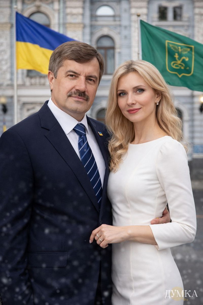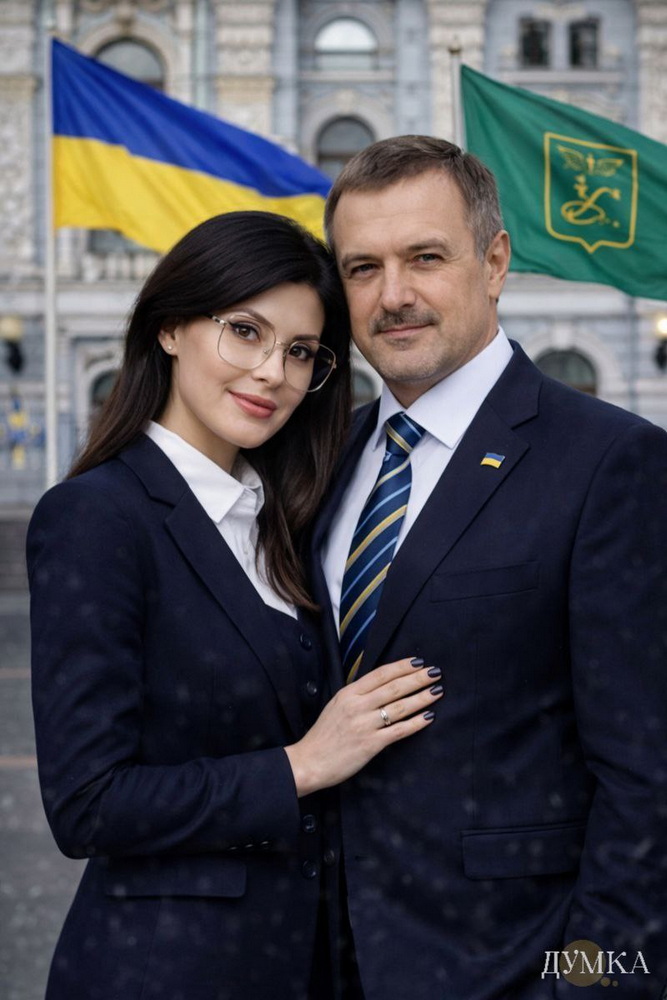 Не обійшли увагою ми й жінок-посадовиць. Так, голові Харківської обласної ради Тетяні Єгоровій-Луценко ШІ "поставив у пару" молодого брюнета з бородою та вусами.