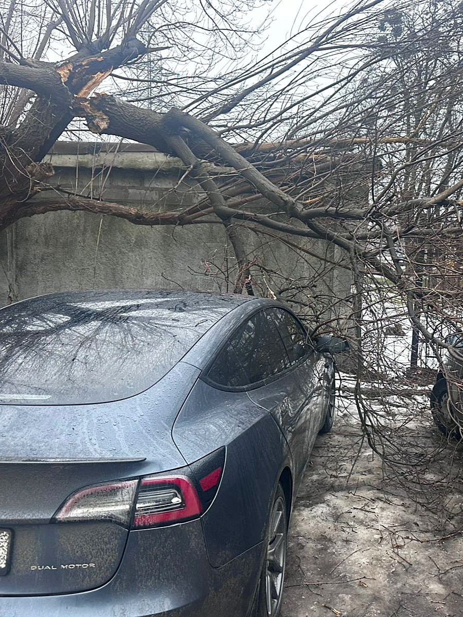 На парковці харківської лікарні старе дерево впало на Tesla (ФОТОФАКТ)