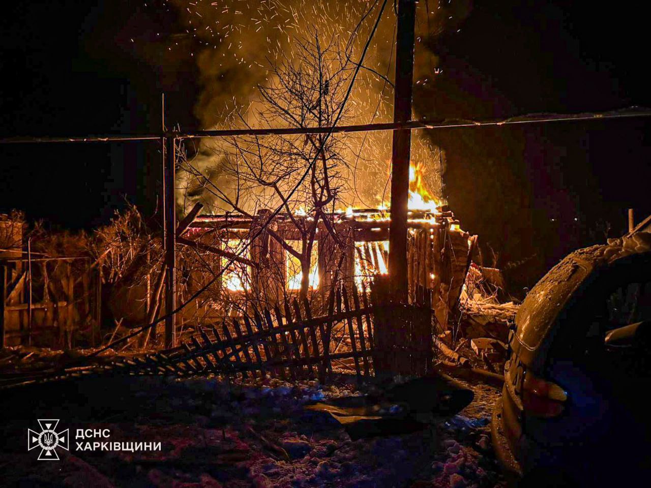 За даними вогнеборців, опівночі 15 січня російські війська завдали удару ударним безпілотником по приватному домоволодінню в селі Великий Бурлук Куп’янського району Харківської області.