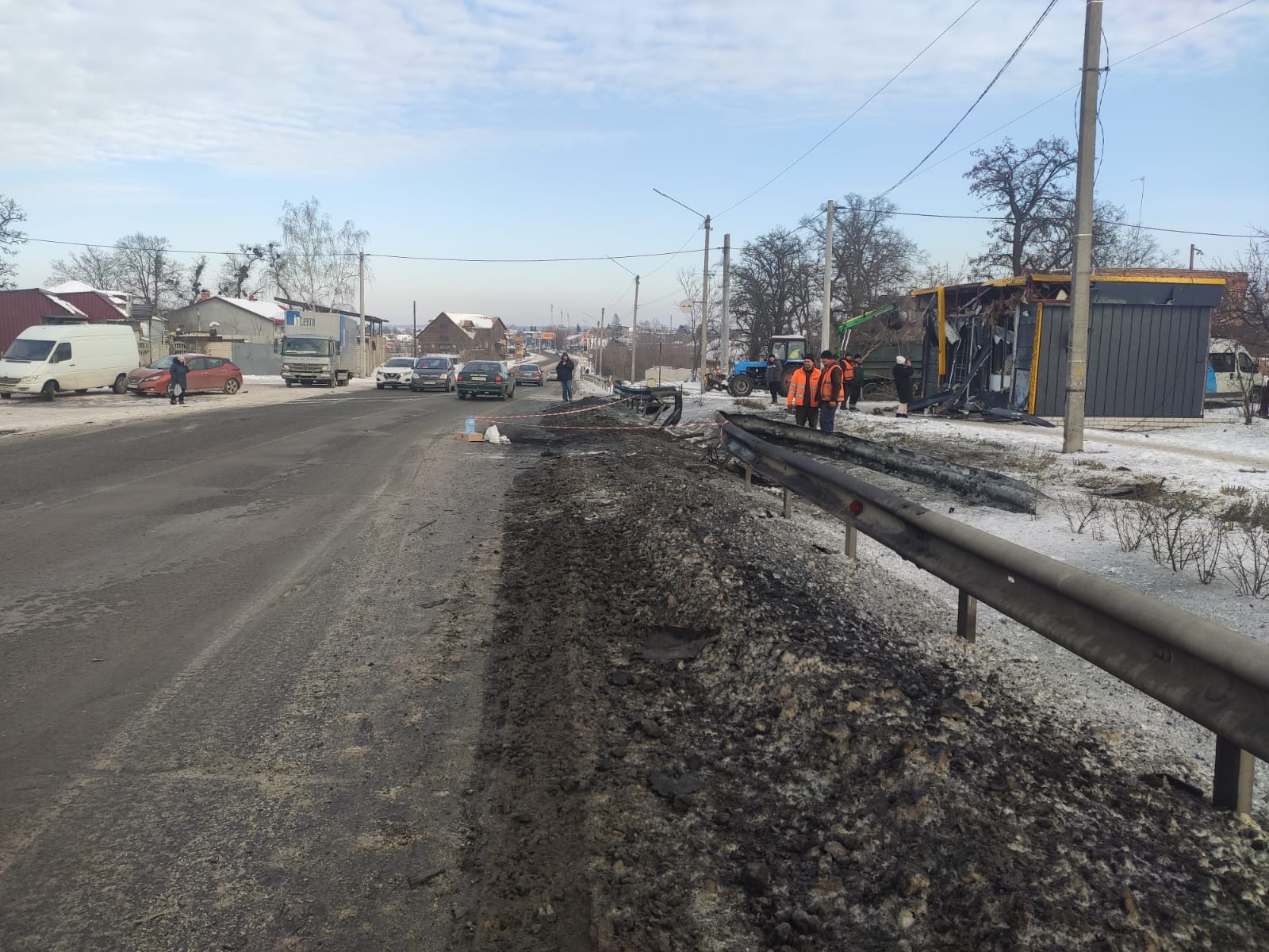 За даними служби, у ніч на 19 січня Мерефа зазнала удару ворожого безпілотного літального апарата — пошкоджено ділянку дороги, якою щодня користуються мешканці громади. Вчасно відновити сполучення було критично важливо для роботи екстрених служб та гуманітарних перевезень.