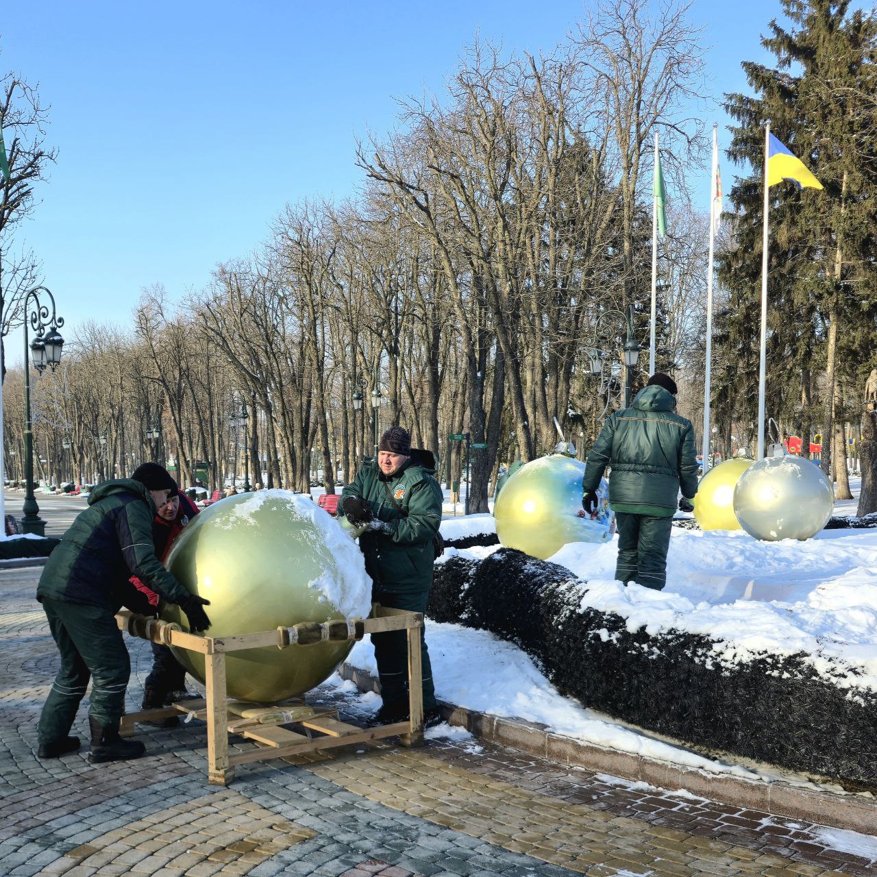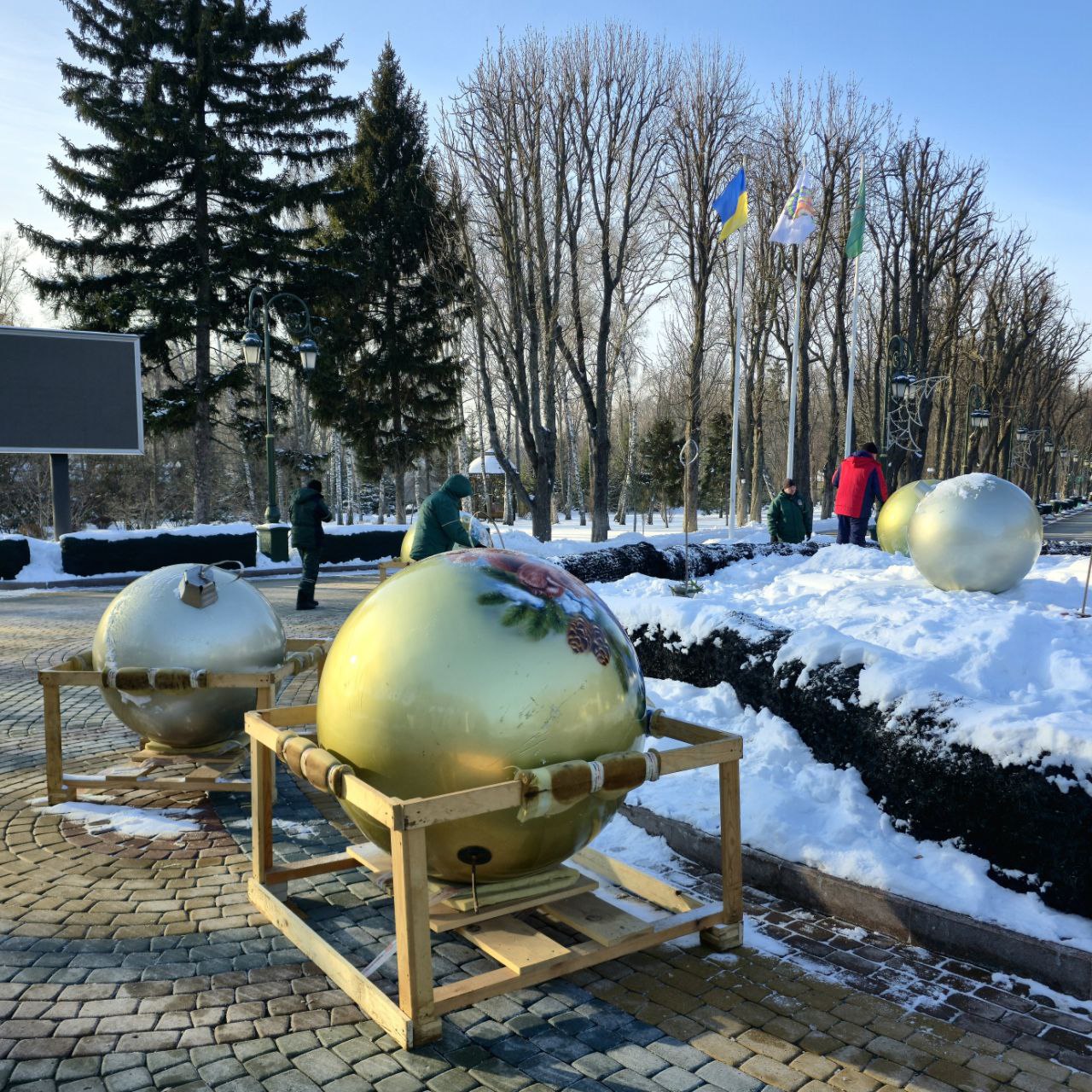 Сьогодні фахівці прибрали ялинку та оздоблення у Дитячому парку, а також демонтували кулі з центральної клумби.