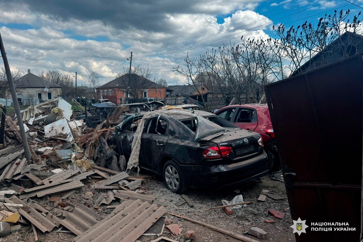 У Богодухові внаслідок ударів безпілотниками пошкоджено житлові будинки, господарчі споруди, два цивільні авто та службовий автомобіль поліції. Постраждали дві жінки віком 75 і 78 років.
