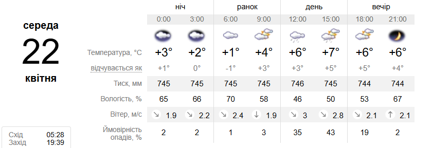 За прогнозами синоптиків, у нічні години температура повітря коливатиметься від 2 до 3 градусів тепла.