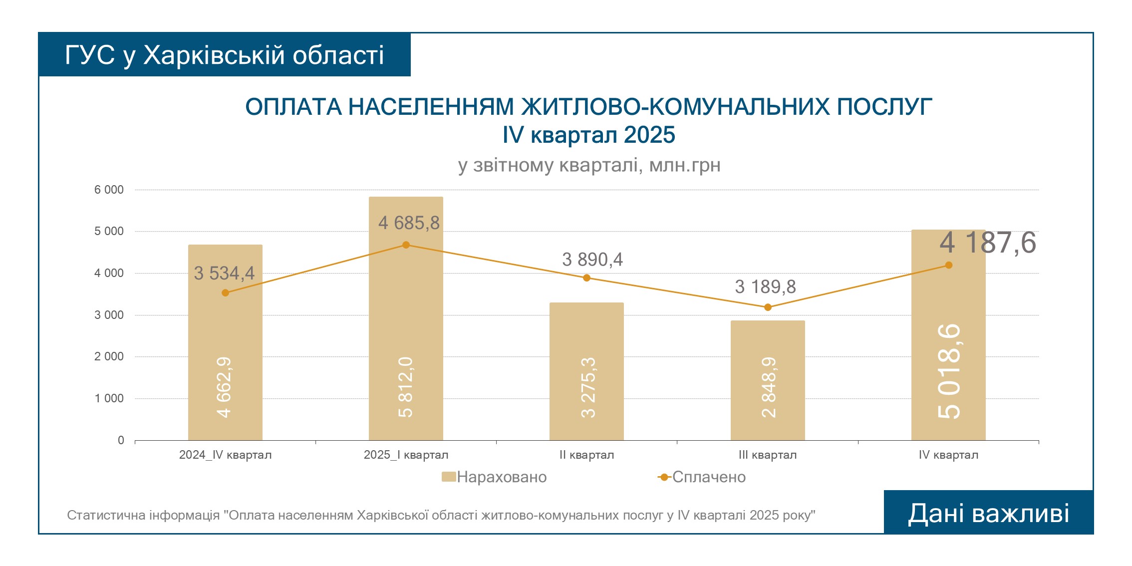 У Харкові у 2025 році в окремі періоди рівень оплат за комунальні послуги перевищував нарахування.