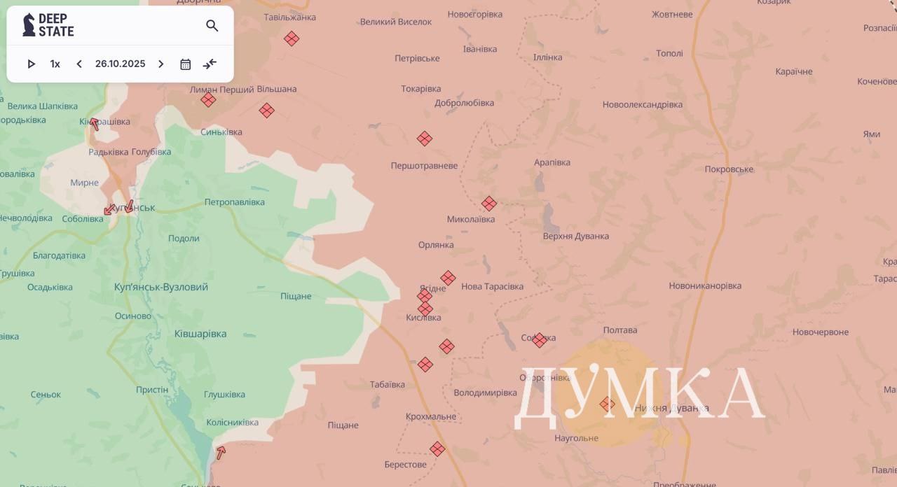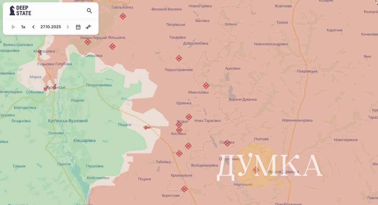 Станом на обід 28 жовтня аналітики DeepState повідомили про просування ворога поблизу Степової Новосілки у Куп’янському районі Харківської області.