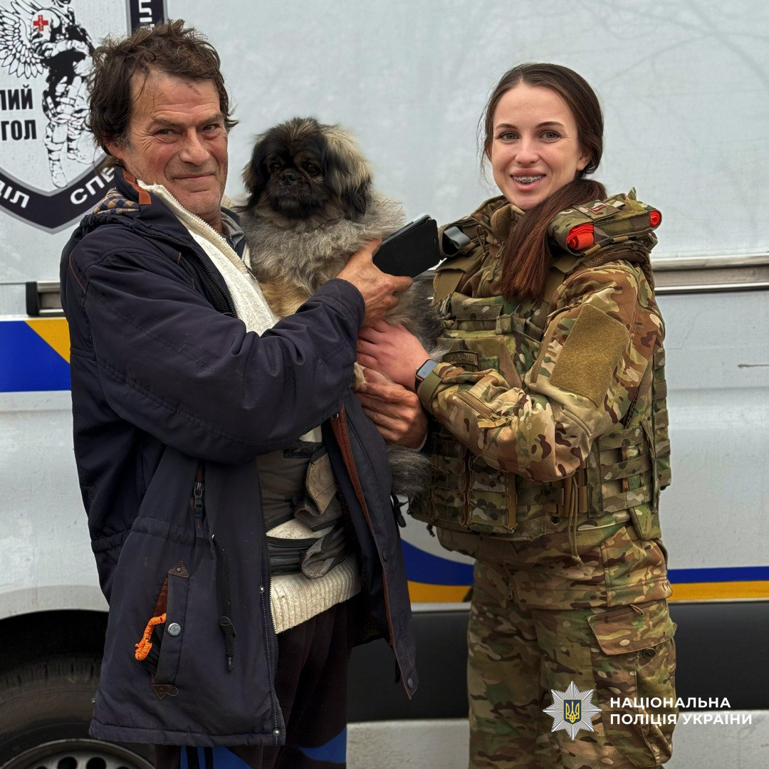 Серед евакуйованих — троє людей похилого віку, двоє з яких маломобільні. Поліцейські дісталися до прифронтового села, де проживав сліпий дідусь з дружиною та їхній син, які тривалий час не могли самостійно залишити небезпечну територію.