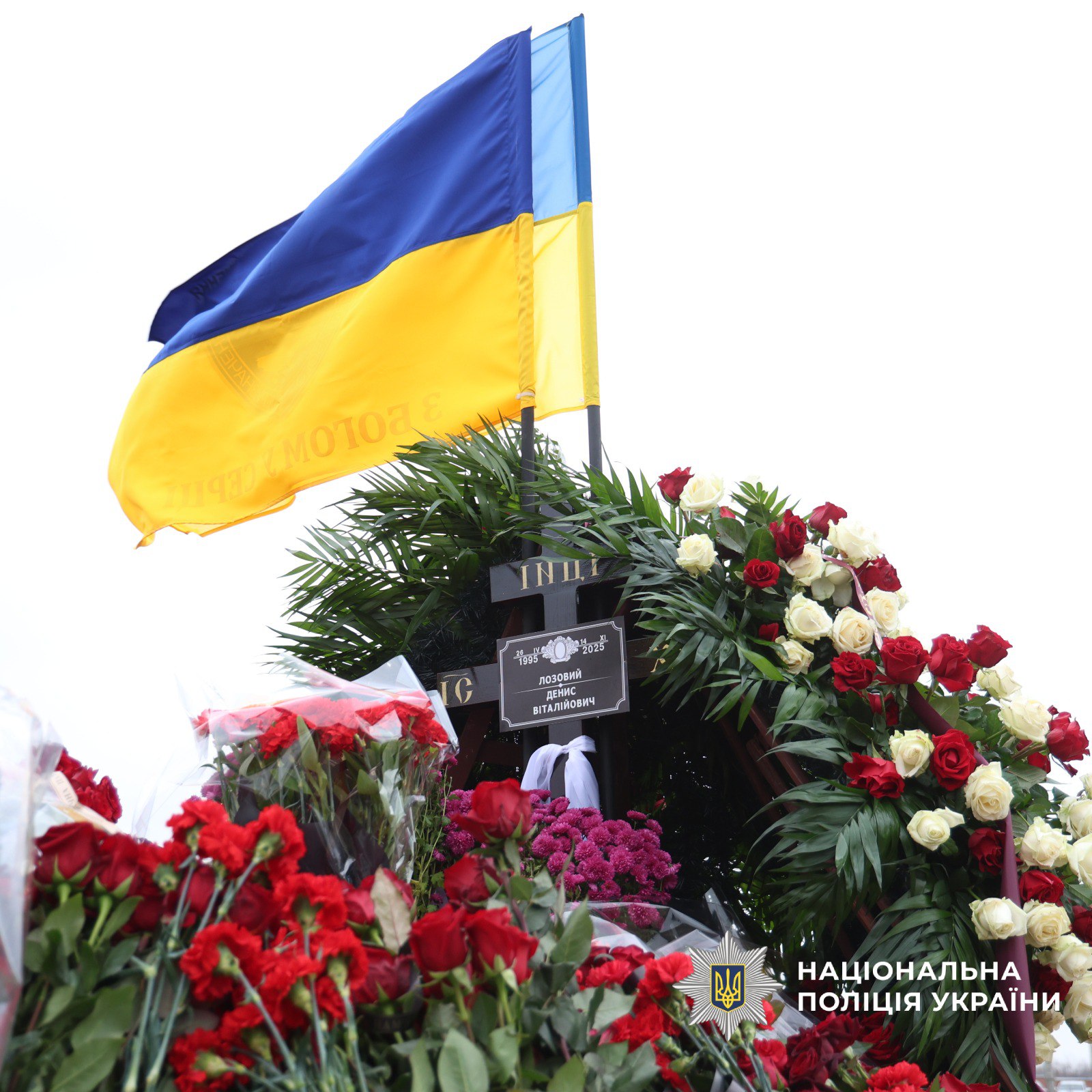 На Харківщині в останню путь провели поліцейського Дениса Лозового, який загинув на війні з російськими окупантами.