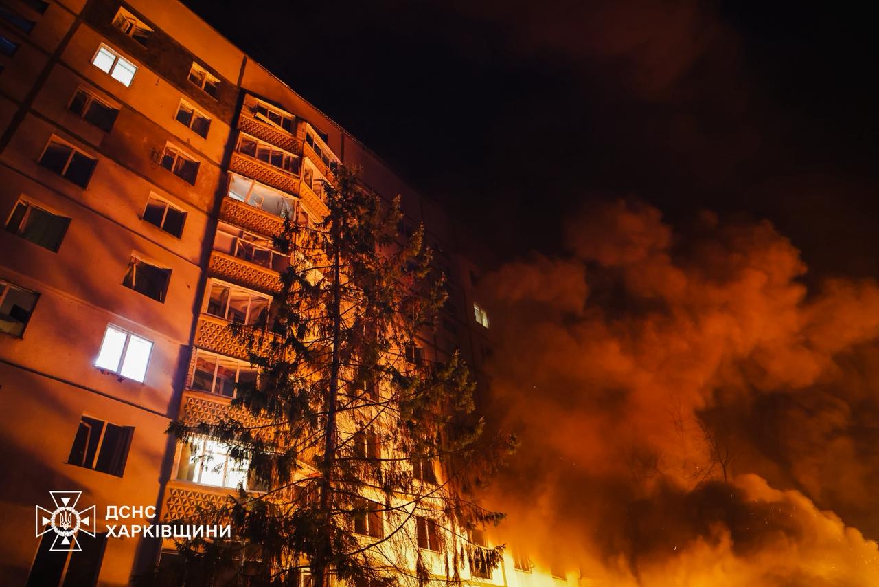 Уночі російські ударні дрони атакували Харків, спричинивши пожежі та руйнування в кількох районах міста.