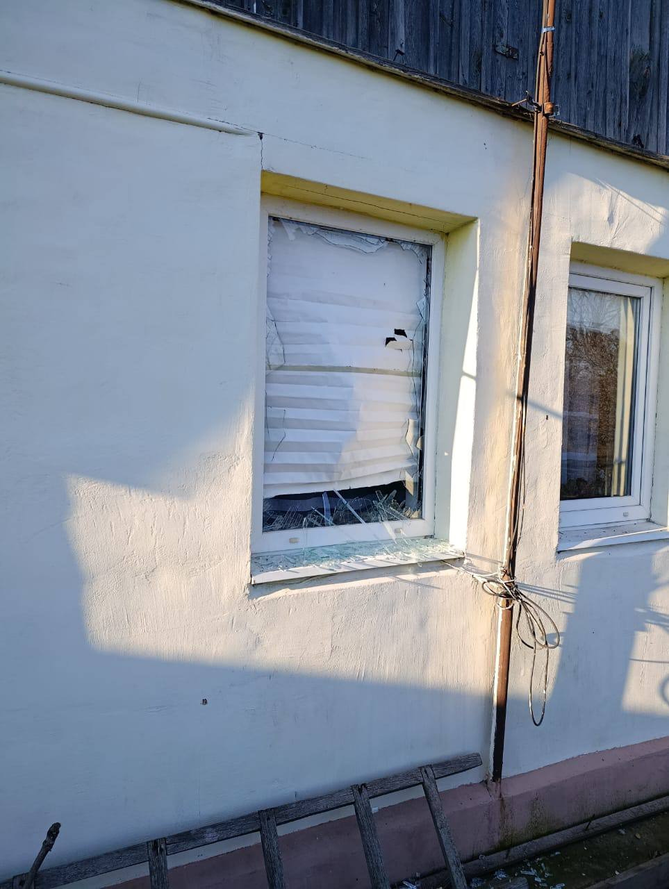 Унаслідок удару пошкоджено чотири домоволодіння (будинки, дахи, вікна, двері), господарчі споруди та енергомережі. Без постраждалих.