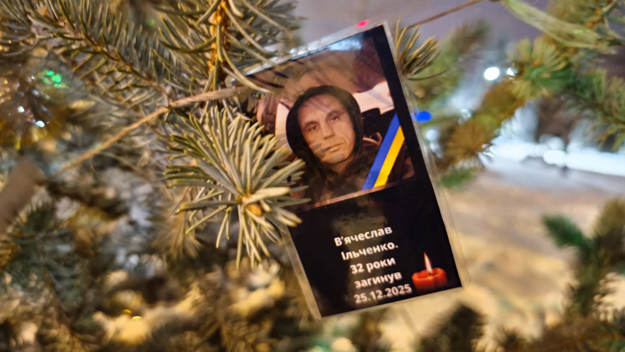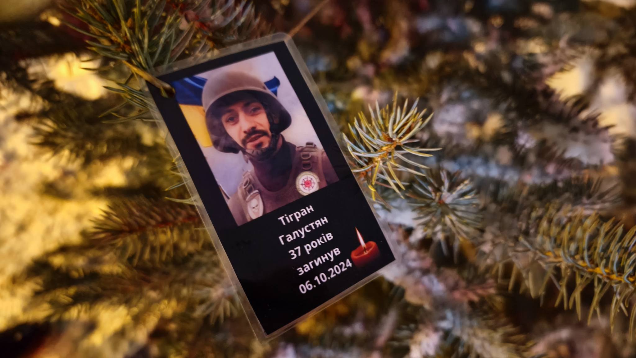 Також на ялинці є фото 37-річного харківського волонтера Тиграна Галустяна, з яким у Харкові попрощалися восени 2024 року.