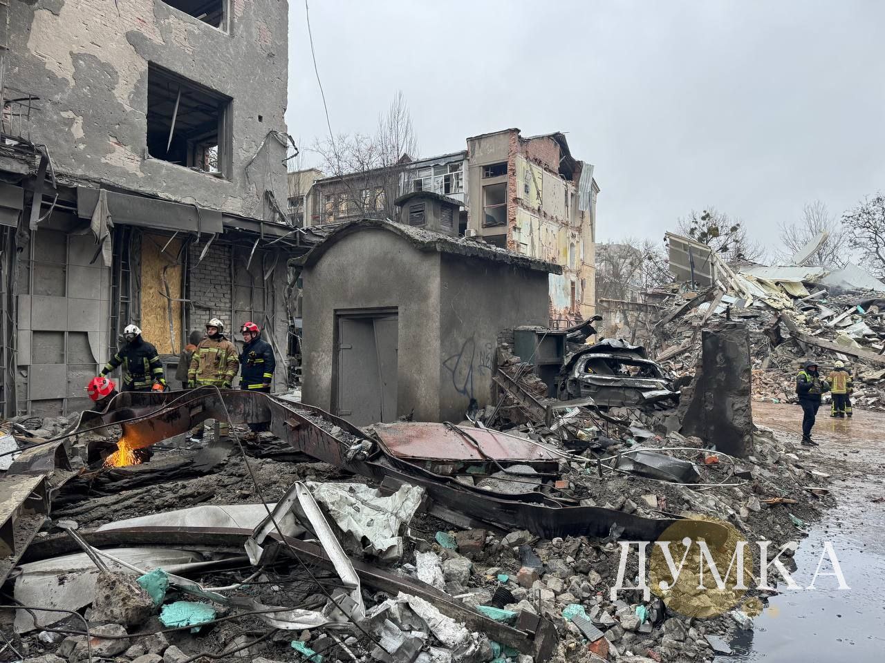 У Харкові всю ніч тривали пошукові дії на місці ракетного удару. На ранок 3 січня пошуково-рятувальна операція триває.