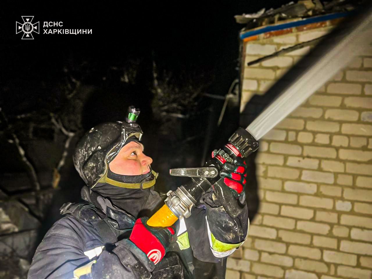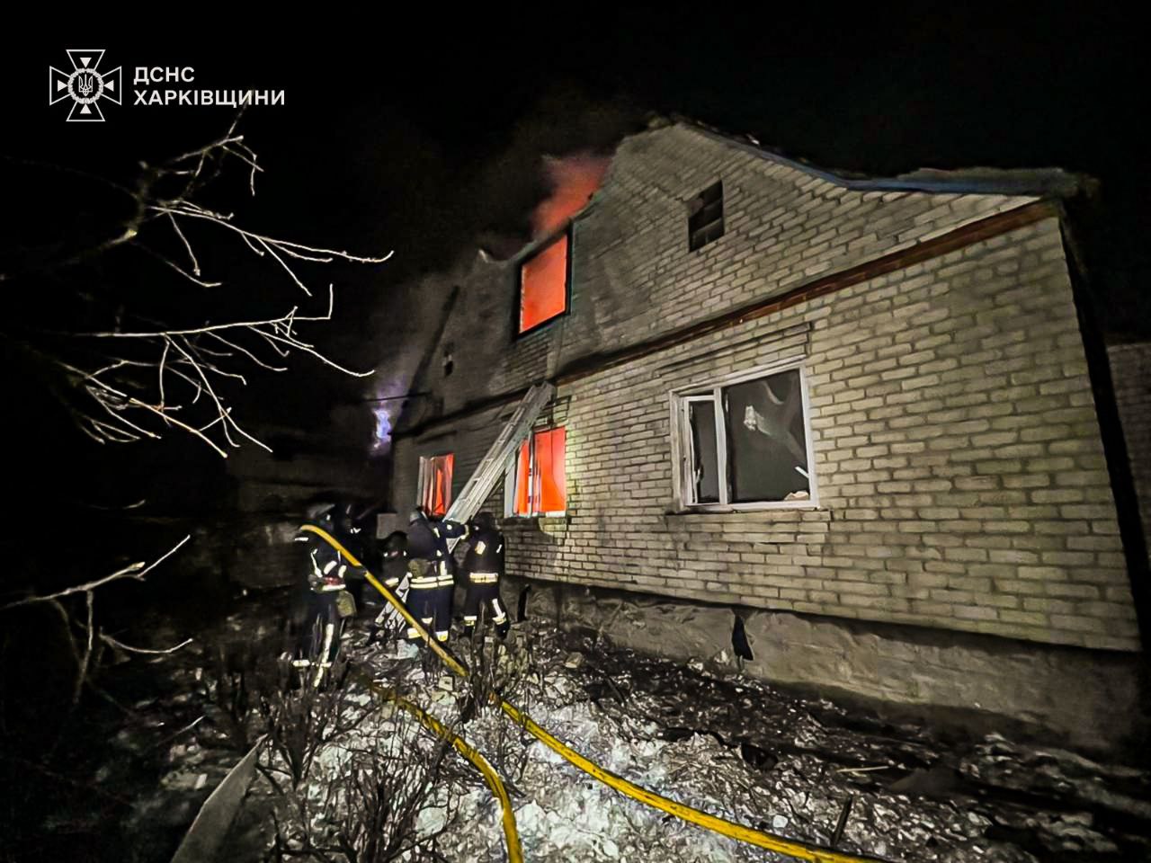 Так, у селі Мартове Чугуївського району ворожий БпЛА влучив у житловий будинок, спричинивши пожежу площею 150 м кв. Постраждало 3 людини.
