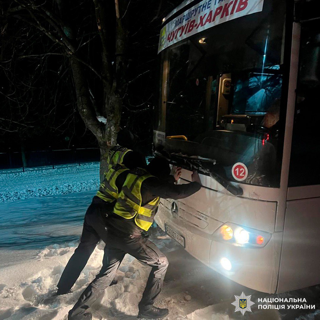 На Харківщині через ожеледицю рейсовий автобус з’їхав з проїзної частини, поліцейські оперативно відновили рух.