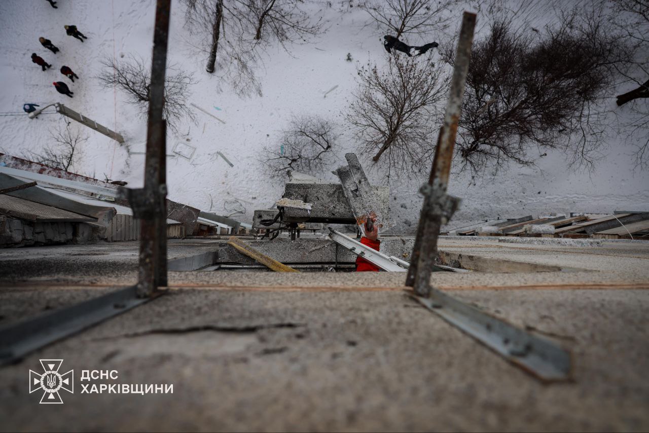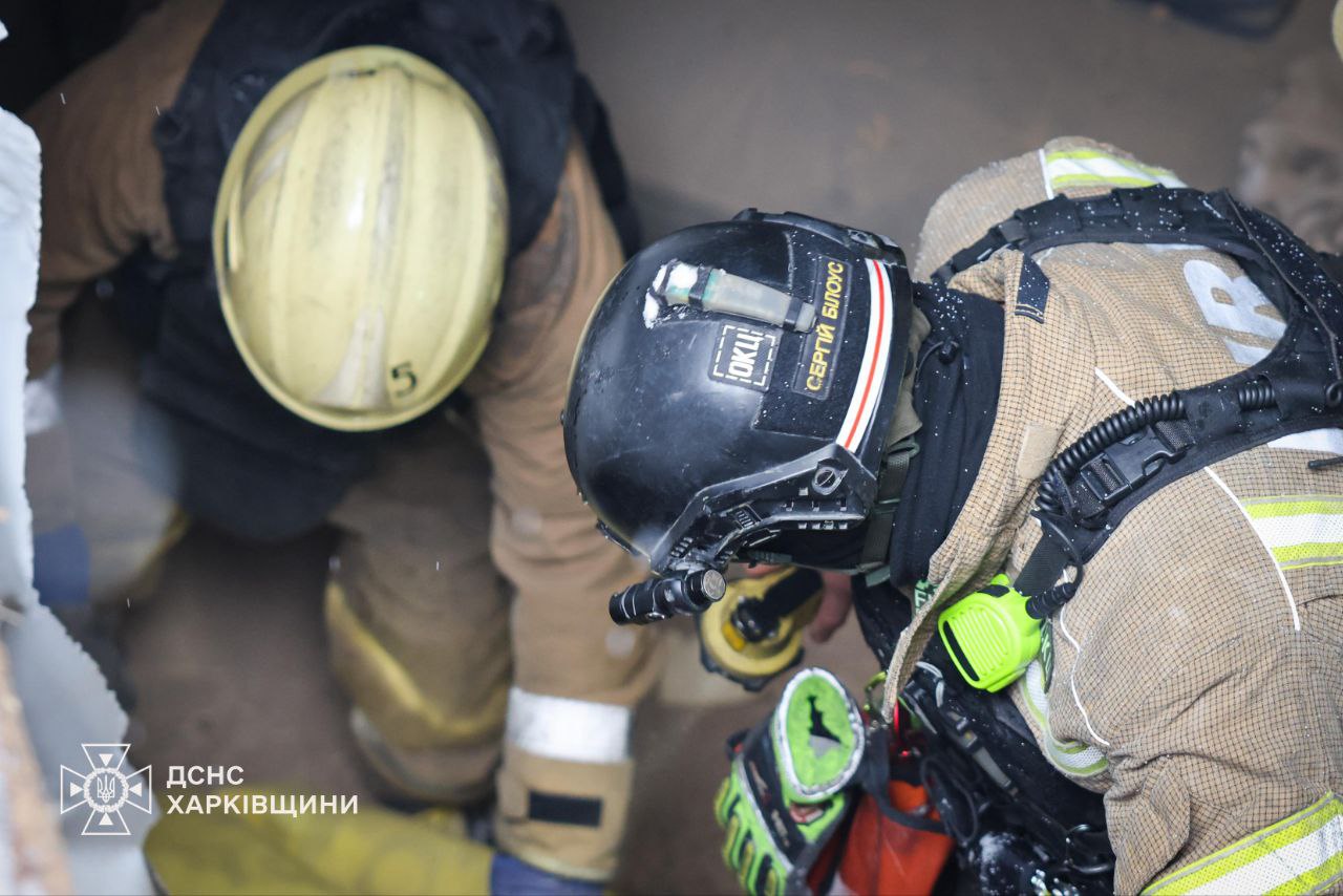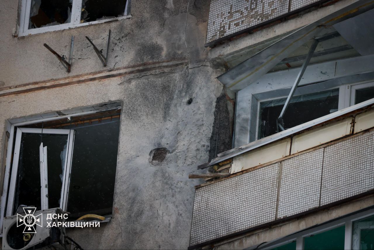 Рятувальники показали наслідки влучання ворожого дрону у харківську багатоповерхівку