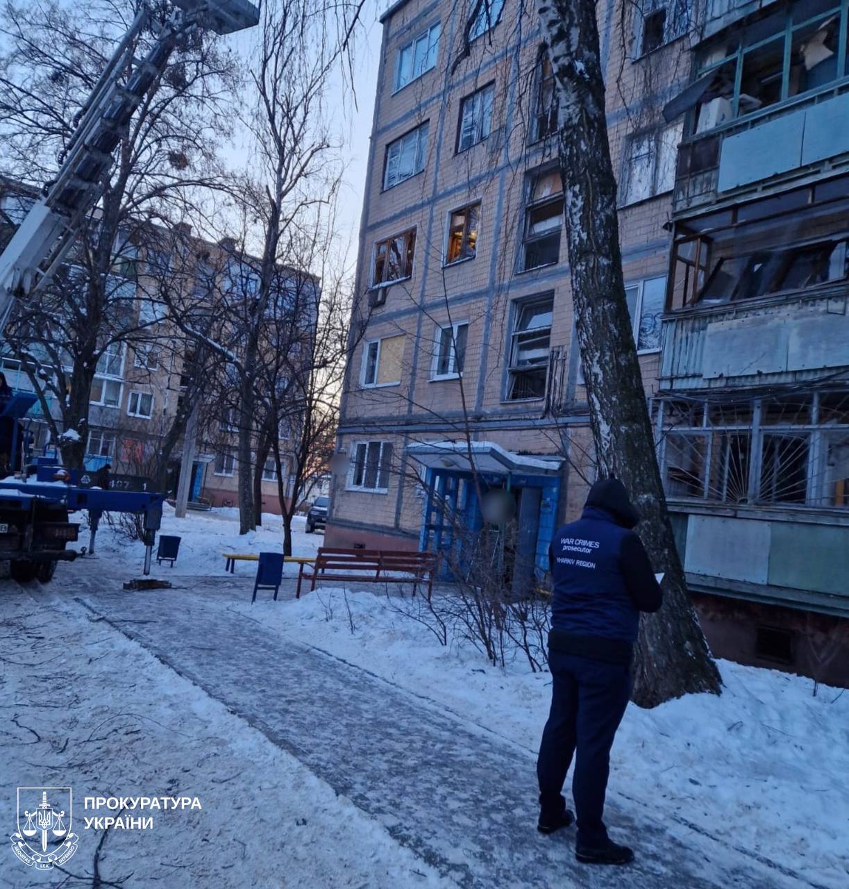 За даними слідства, сьогодні, 26 січня, близько 15:00 російський ударний безпілотник, попередньо, "Молнія" поцілив у двір багатоквартирного будинку в Немишлянському районі Харкова. Ніхто з громадян не постраждав.