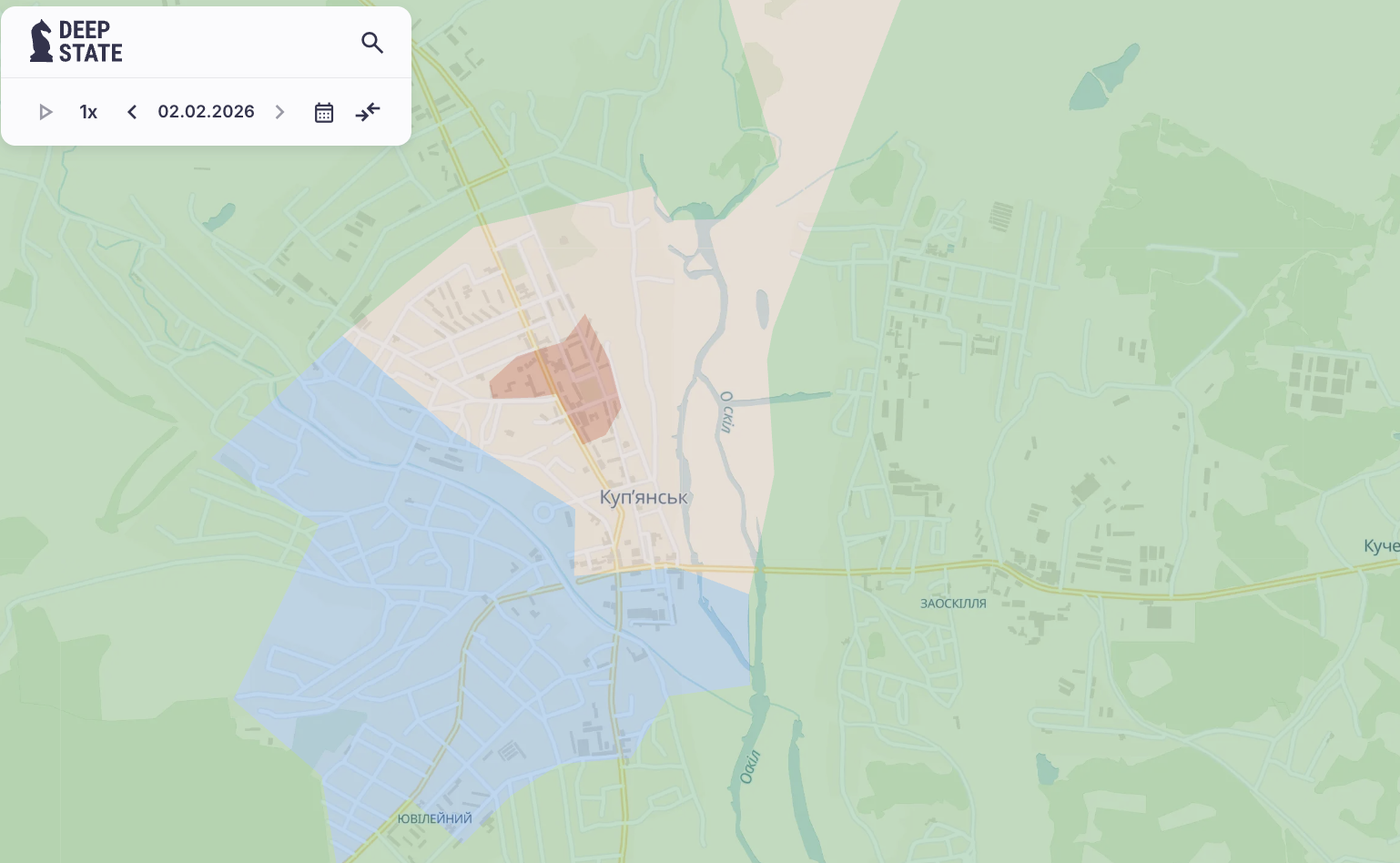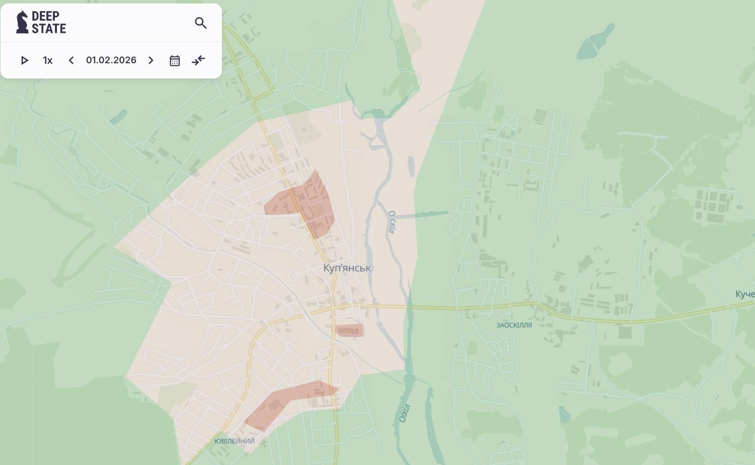 Зміни на мапі фіксують скорочення зони впливу російських військ у Куп’янську порівняно з попередніми днями.
