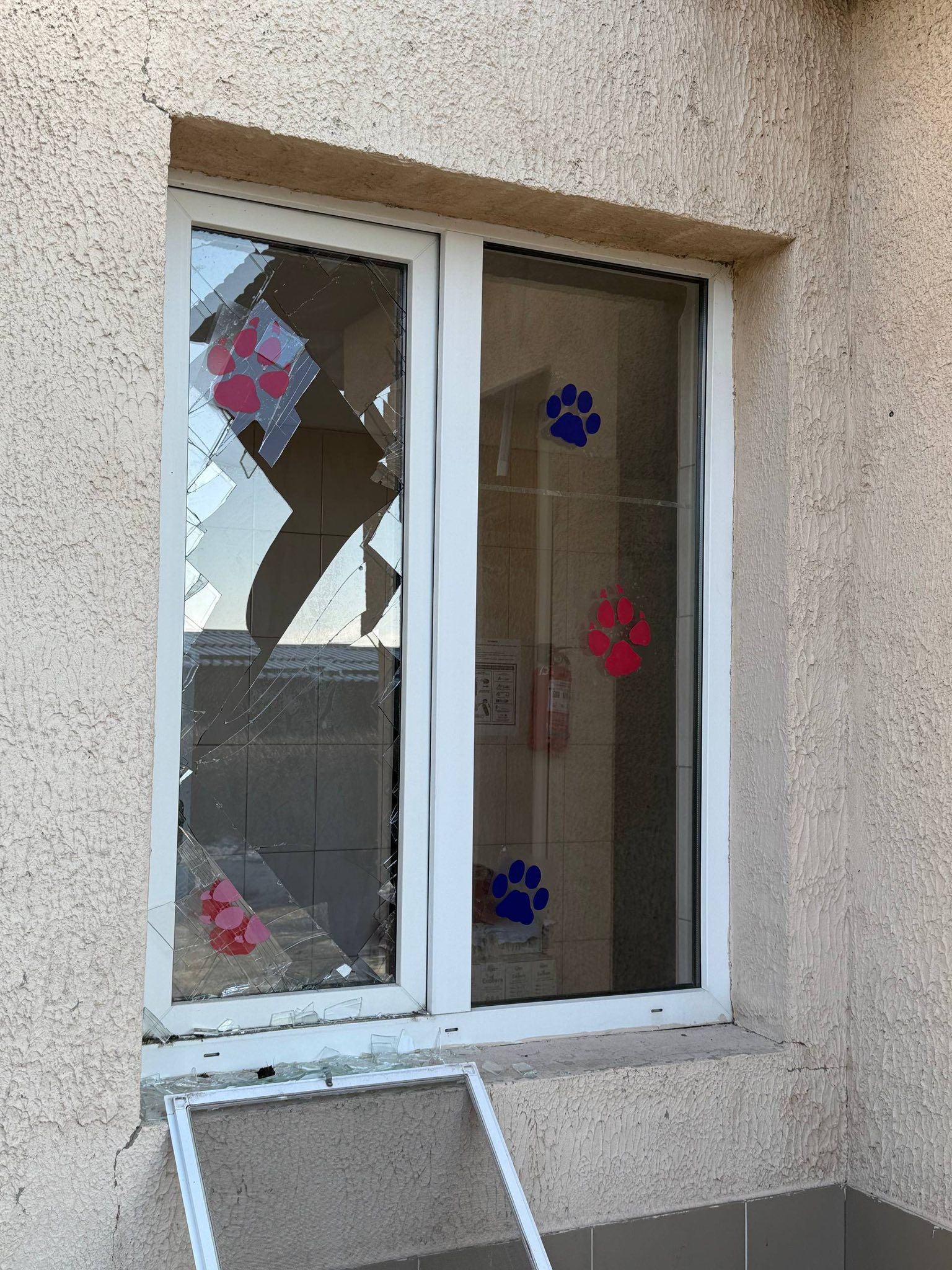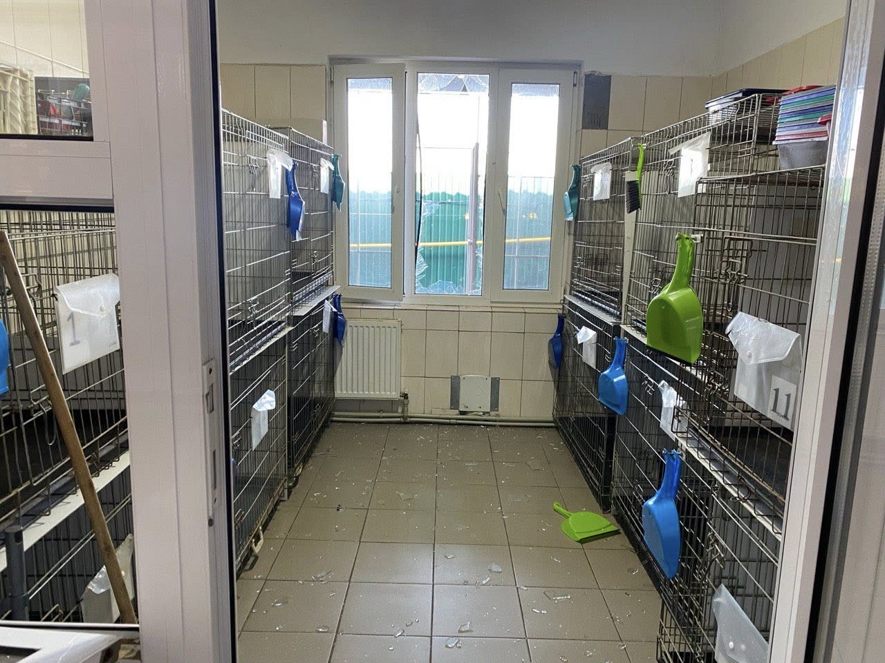 Працівники притулку тимчасово пересадили тварин у вцілілі вольєри, забили вибиті вікна фанерою та прибирають уламки, відновлюючи критично важливі операційні.