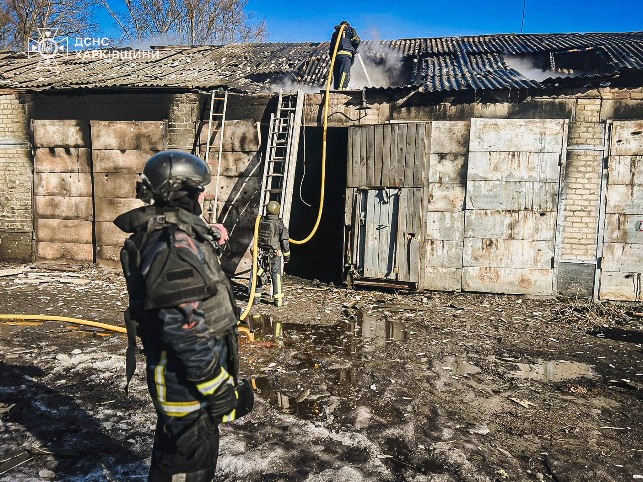 У ніч проти 12 березня росіяни атакували будівлю гаражу в лісі у Великому Бурліці, вогонь вдалося загасити.
