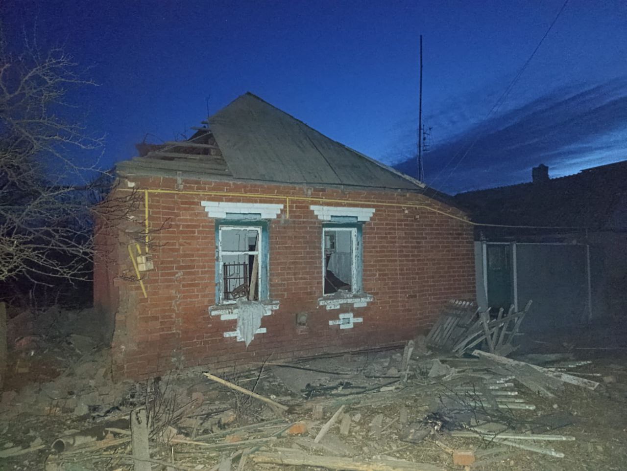 Внаслідок влучання повністю знищено один будинок, частково пошкоджено 6 будинків, один легковий автомобіль та енергомережі.