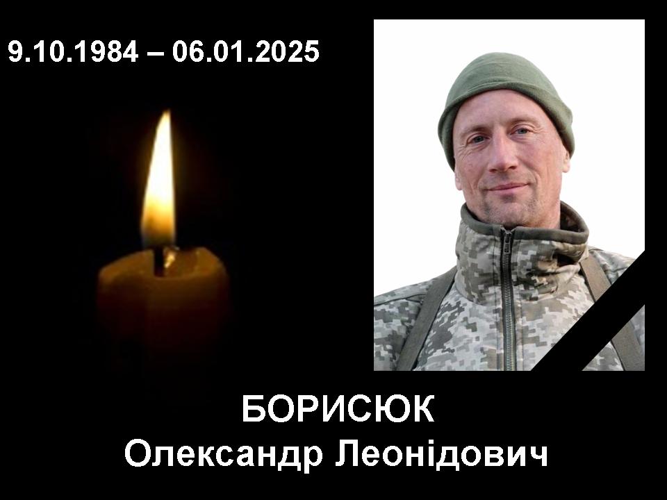 6 січня 2025 року Олександр Борисюк загинув під час виконання бойового завдання в районі населеного пункту Махновка Курської області рф.