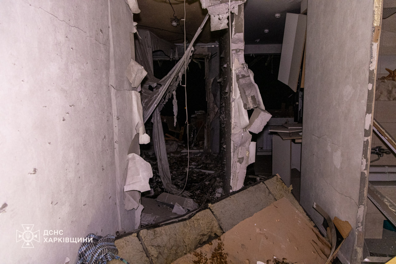У Харкові російський ударний дрон влучив у багатоповерхівку: кадри з місця