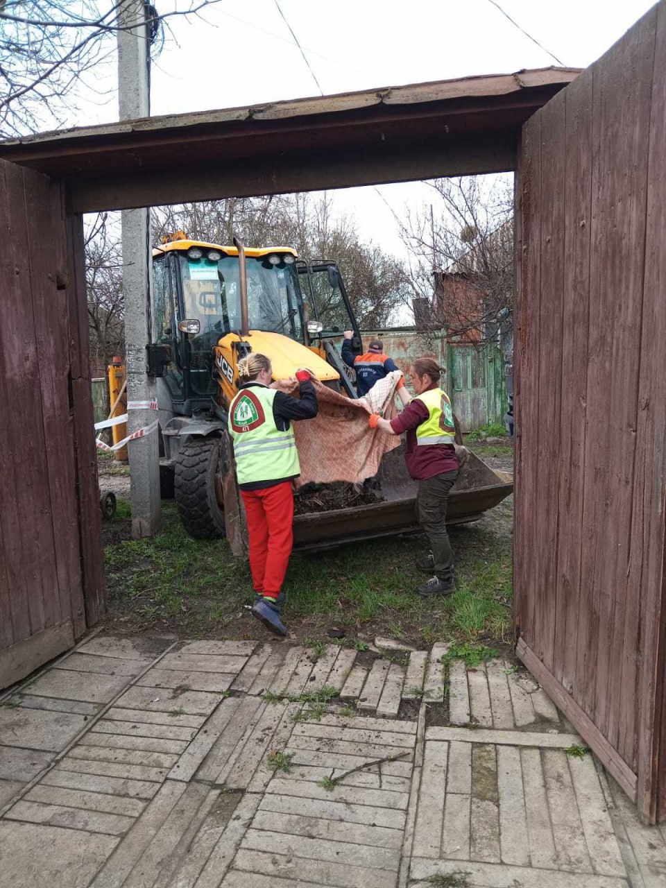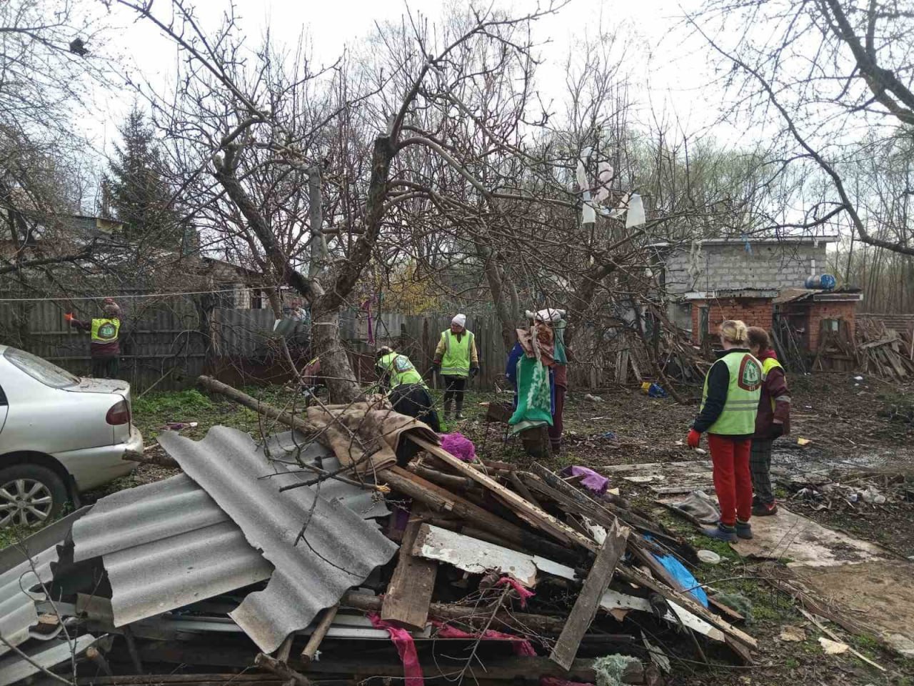 У Немишлянському районі Харкова комунальники прибирають безлад після атаки дрона.