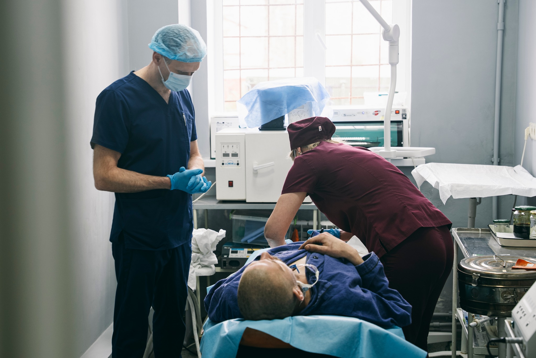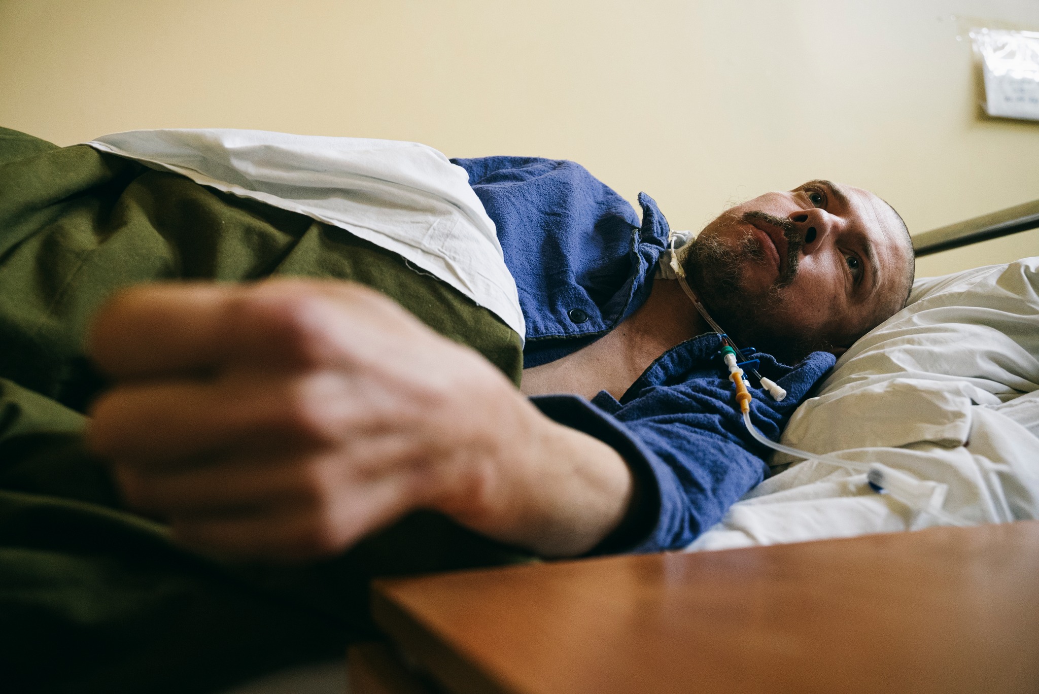 "У квітні ми вже не чекали таких обморожень, але доставляють бійців, у яких були проблеми з евакуацією, з логістикою. Головне, що пацієнт живий. Обмороження у нього — третього і четвертого ступеня обох стоп з розвитком вологої гангрени та некрозів. Тому було прийняте рішення про ампутацію обох нижніх кінцівок на рівні нижньої третини обох гомілок", — пояснює начальник відділення хірургічної інфекції та термічних пошкоджень шпиталю Володимир Купріянчук.